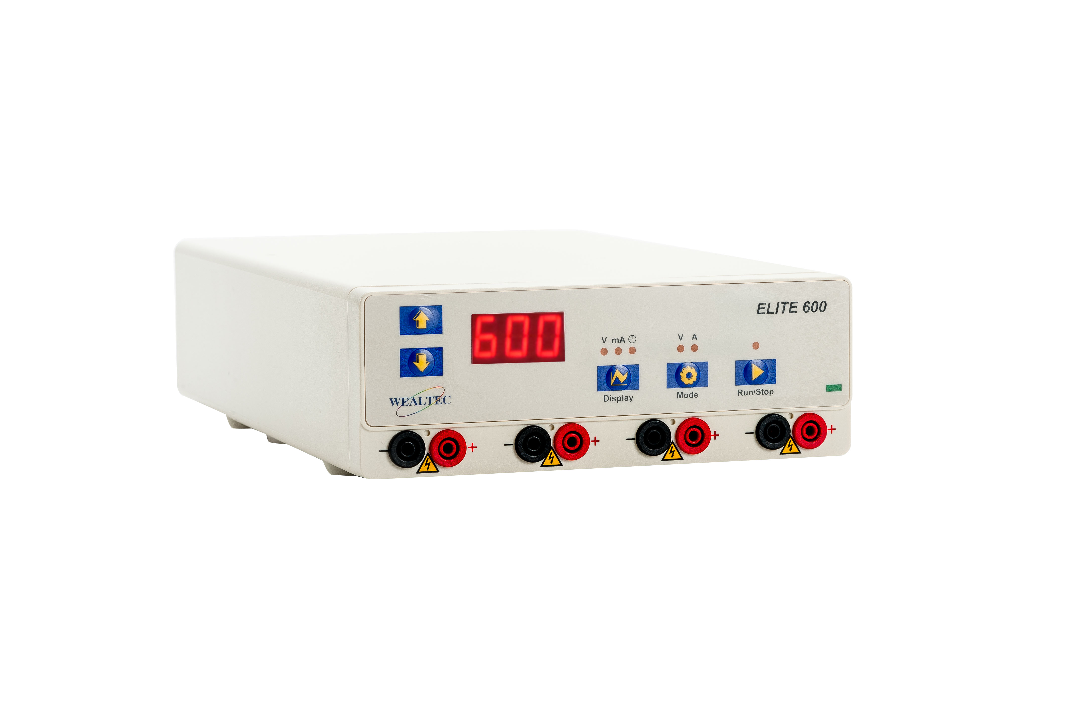 ELITE 600U is a stackable, compact and high voltage power supply that mainly used for high throughput electrophoresis. Three digits seven segments LED readout voltage, current and time. Error messages include no load detection, sudden load change, over voltage protection, automatic recovery after power failure, short circuit, and current differential alarm for easy troubleshooting. Easy control Constant V/A with automatic crossover, adjustable voltage and current in minimum 1V and 1mA increment provide flexible condition and parameter settings. Four sets of output terminals with adjustable V/A while running vertical or horizontal electrophoresis, Western blotting, DGGE/CDGE/TTGE/TDGS. ELITE 600U serves perfect combination and excellent result to the Multi-Cell.